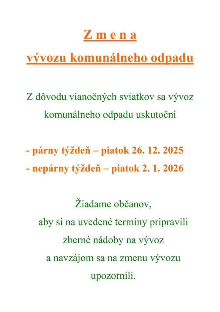 ZMENA VÝVOZU KOMUNÁLNEHO ODPADU